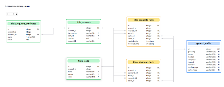 Конечно, схемы в интерфейсе сервиса были и до этого, но ранее это были статичные картинки, которые мы генерировали в стороннем инструменте вручную. Теперь с этой схемой можно взаимодействовать - менять расположение таблиц, изучать идентификаторы в таблица и направление связей.